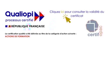 Cette certification atteste de la qualité du processus que nous mettons en œuvre pour développer les compétences de nos stagiaires.